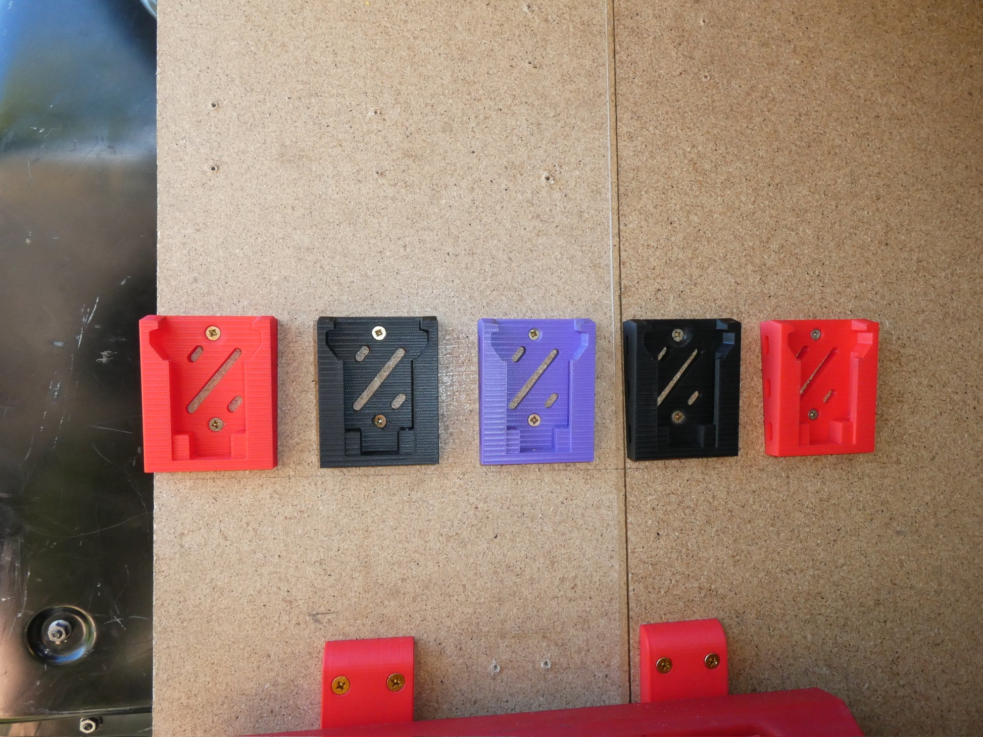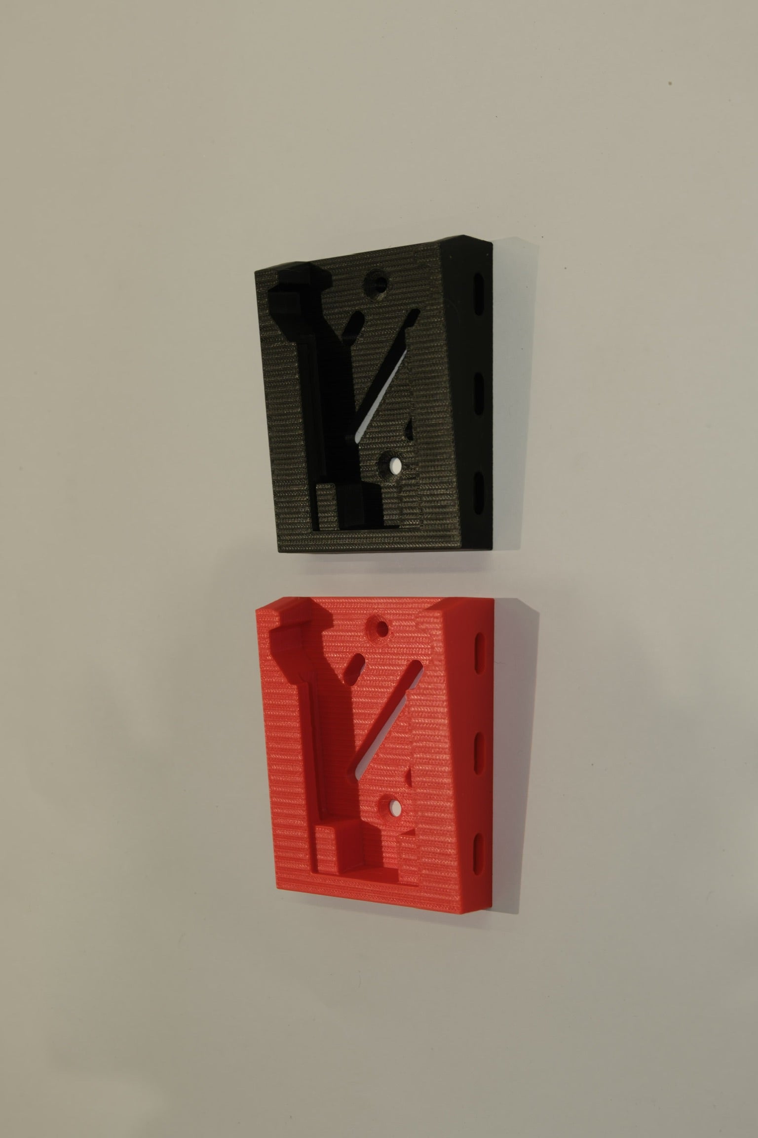 A wall mounted battery holder for your M18 Milwaukee batteries, 3D printed from PLA in Red or Black- this solid design will keep your vans and workshops tidy and your batteries in perfect a dedicated spot avoiding damage!